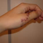 - We may be scratched up our forearm as we trim nails on an excited young Labrador puppy.