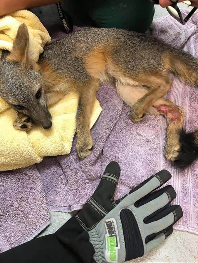 This fox was rescued by California Wildlife Encounters. The fox was running from dogs and got caught in a fence. His leg was completely jammed in between the fencing. Using ArmOR Hand Gloves®, the rescue team safely removed the fox from the fence, transported him for care, and provided the necessary medical diagnostics and treatment for his recovery.