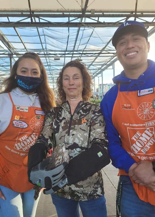 “The hawk was perched high up in the ceiling and was surrounded by Home Depot inventory that made this rescue even more challenging.”