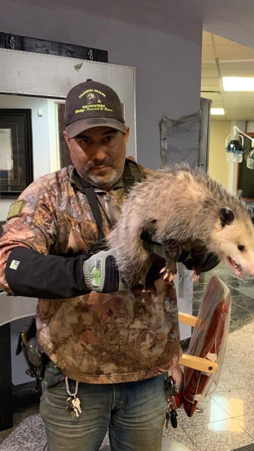 “Last night Michele Dodge, Christina Sullivan and myself received a call for an opossum that fell through the ceiling panels at a hair salon in Folsom called Aqua FX Salon. The scared opossum was crafty and hid underneath a pedicure chair and eventually came out and we were able to safely capture the wayward opossum using ArmOR Hand Gloves and released her unharmed.”