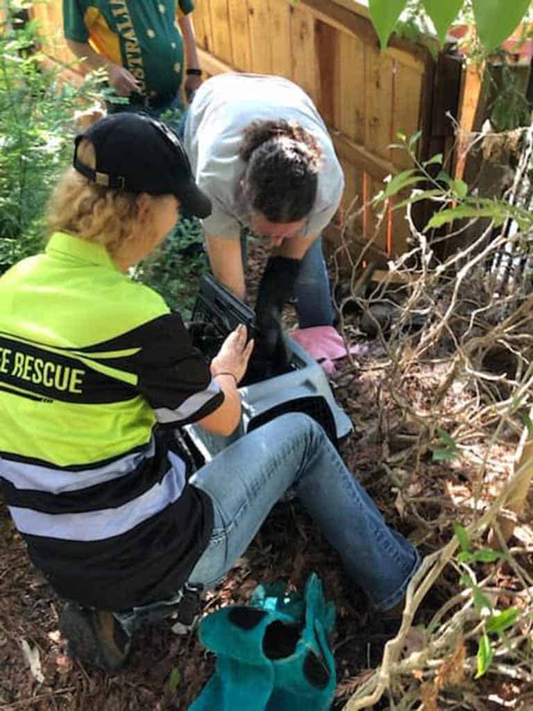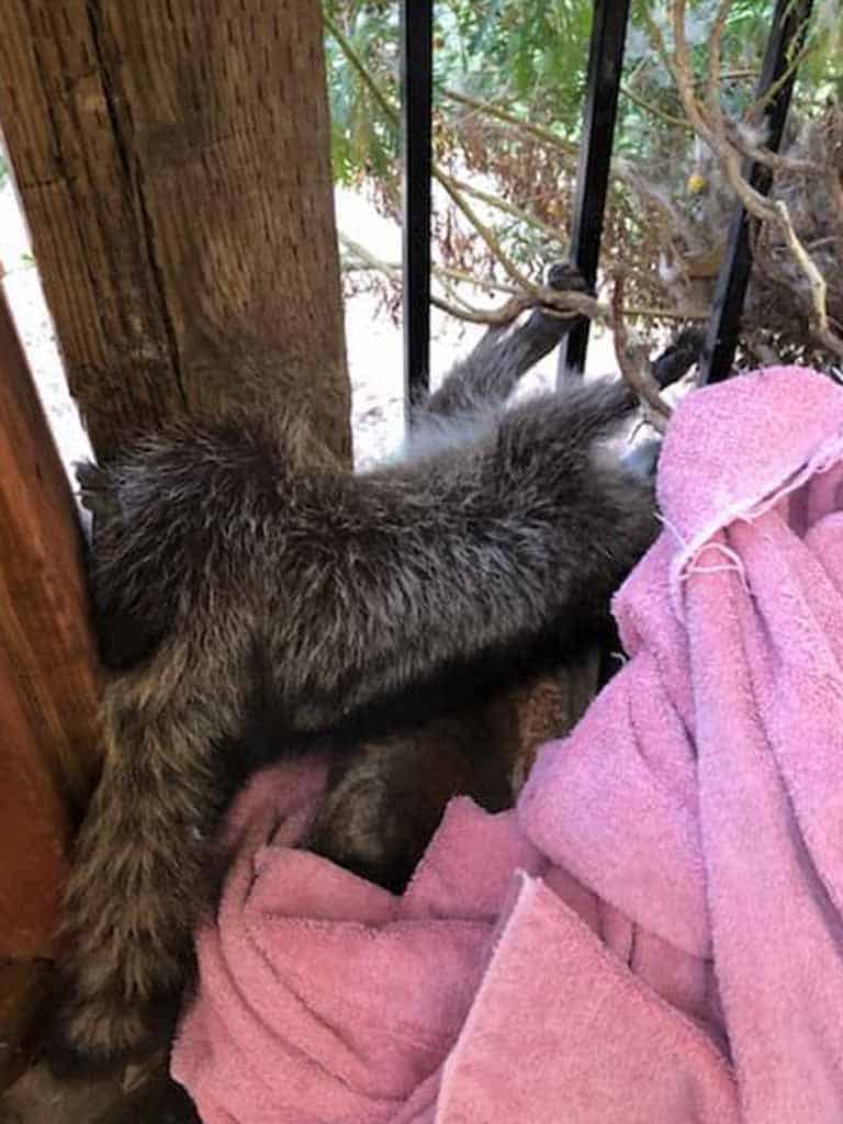 “A report came in this morning regarding a young raccoon. The raccoon had caught his leg between two fences in Rocklin, California. I contacted Christine Lay and Christina Sullivan for help and they responded immediately. The raccoon’s leg was tightly wedged between a wood and wrought iron fence. David Gish also responded to help. Using ArmOR Hand Gloves, they were were successful in rescuing the little raccoon. Fortunately, the raccoon only suffered soft tissue damage and not a broken leg. He is expected to make a full recovery.”