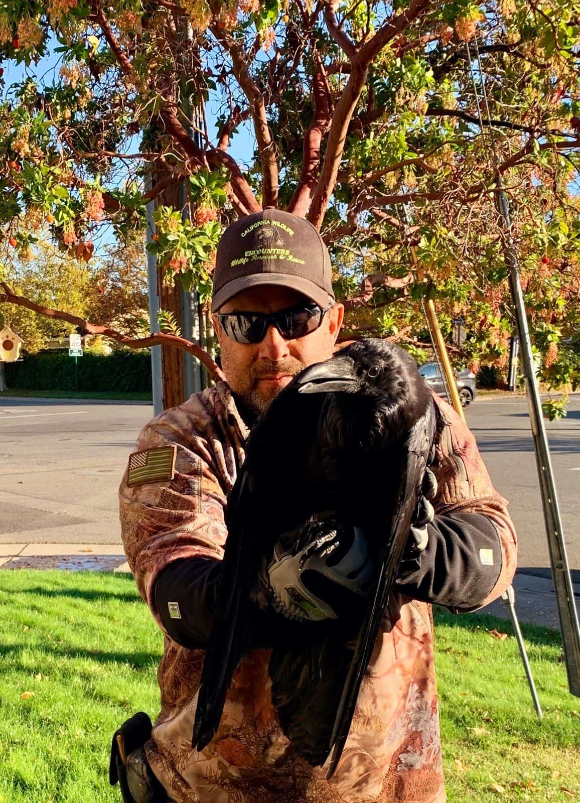 “Multiple calls for help for this raven who has been on this roof for 4 days. The raven has a fractured wing and is unable to leave the 2 story house. Residents describe hearing gunshots earlier in the area and possibly suspect this raven may have been shot. Michele Dodge and myself responded this morning and with help from concerned neighbors, we were able to rescue the raven using ArmOR Hand Animal Handling Gloves. We then transported the injured corvid to Gold Country Wildlife Rescue in Auburn for a health assessment.”